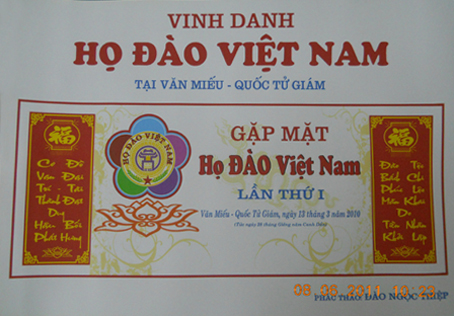 Còn về lô gô họ Đào Việt Nam đã được nêu ra từ lần họp trước, trong cuộc họp này có 3 mẫu logo, trong đó mẫu của ông Đào Ngọc Thiệp tuy chưa đạt được như mong muốn, nhưng nhận được nhiều ý kiến đồng tình. Tuy nhiên, để chọn mẫu này thì cần bổ xung một số chi tiết như: có tiêu chí rõ ràng, bổ sung hình ảnh trống đồng, chim lạc và nền vàng….